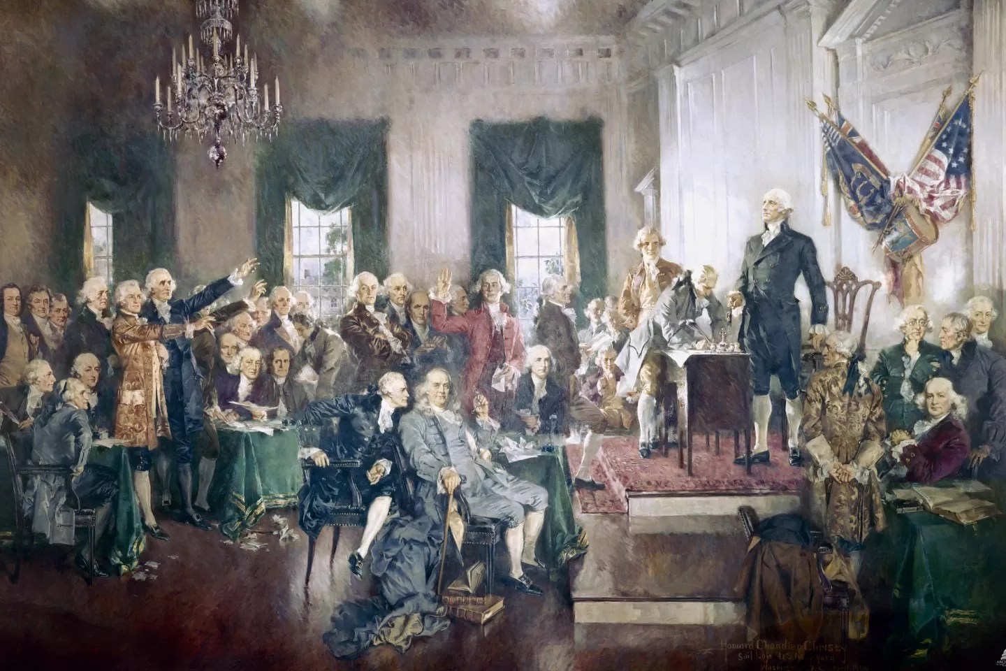 “Signing of the US Constitution” (1940) by Howard Chandler Christy, US Capitol Building (PD as work product of federal govt.)