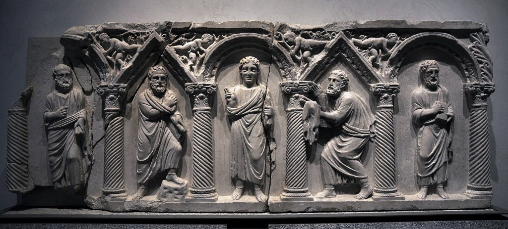 5th Century Christian sarcophagus depicting Christ and the Apostles, Museum of Fine Arts, Lyon, France, Author Vassil (PD)